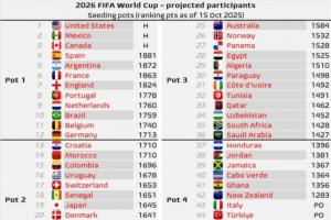 體育資訊10月15日訊 10月國(guó)際比賽日結(jié)束,距離世界杯12月抽簽只差2個(gè)月,各隊(duì)只剩11月國(guó)際比賽日能夠獲得積分。