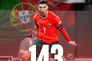 C羅國家隊(duì)生涯225場打進(jìn)143球,繼續(xù)領(lǐng)跑國家隊(duì)歷史射手榜,領(lǐng)先第二梅西29球!