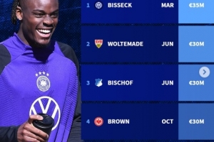 體育資訊10月16日訊 德國轉(zhuǎn)會市場盤點(diǎn)了足球強(qiáng)國2025年上演首秀的球員,德國共5名球員上演首秀,這包括了比塞克、沃爾特馬德。