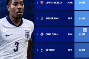斯凱利(阿森納,3月上演首秀):4500萬(wàn)歐元