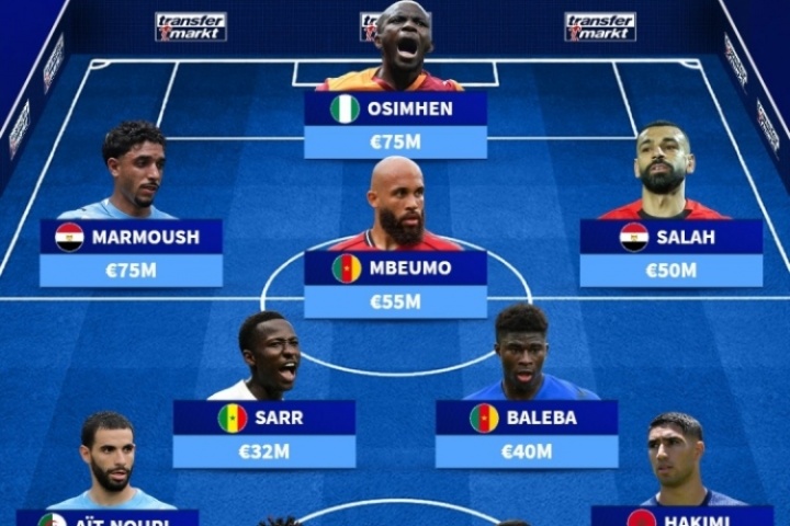 體育資訊10月16日訊 德轉(zhuǎn)盤點(diǎn)了非洲足聯(lián)球員的最高身價(jià)陣容,整套陣容總價(jià)值高達(dá)5.42億歐元。其中巴黎后衛(wèi)阿什拉夫以8000萬歐元成為身價(jià)最高的球員,奧斯梅恩、馬爾穆什以7500萬歐元緊隨其后。
