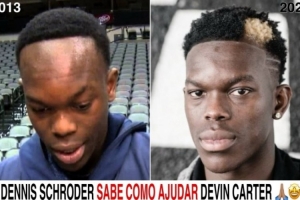 體育資訊10月16日訊 國(guó)外自媒體goatbr曬出了德文-卡特和隊(duì)友施羅德的發(fā)際線(xiàn)對(duì)比圖,并調(diào)侃到:“施羅德知道該怎么幫你。”