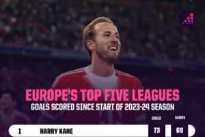 體育資訊10月16日訊 根據(jù)OPTA的統(tǒng)計,自2023-24賽季以來,凱恩是五大聯(lián)賽進球最多的球員,他69場聯(lián)賽打進73球。
