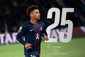 巴黎官方統(tǒng)計,杜埃職業(yè)生涯至今參與25粒法甲進(jìn)球(13球12助),成為在法甲首位達(dá)成這一數(shù)據(jù)的2004年及之后出生球員,他出生于2005年6月3日。