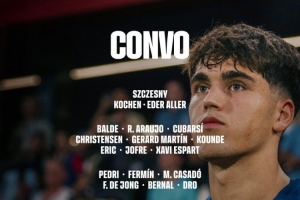體育資訊10月18日訊 北京時(shí)間今天22點(diǎn)15分,巴薩將在西甲第9輪比賽中主場(chǎng)對(duì)陣赫羅納,巴薩公布了此役的球員名單,亞馬爾、拉什福德、費(fèi)爾明在列,萊萬(wàn)、拉菲尼亞、費(fèi)蘭-托雷斯、奧爾莫、霍安-加西亞、加維缺席。