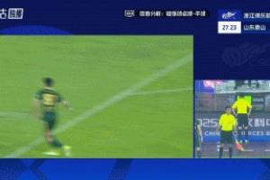 體育資訊10月18日訊 中超第27輪,浙江坐鎮(zhèn)主場對陣山東泰山,主裁親自回看VAR,沒有判罰浙江球員禁區(qū)內手球犯規(guī),目前比分仍為0-0