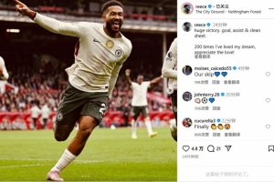 體育資訊10月18日訊 今天,切爾西在英超3-0擊敗諾丁漢森林,里斯-詹姆斯賽后在Instagram發(fā)文,慶祝個人藍(lán)軍生涯200場里程碑。