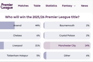 英超官網(wǎng)表示,這可能是英超有史以來(lái)最精彩的冠軍爭(zhēng)奪戰(zhàn)之一。他們發(fā)起了“誰(shuí)能最終奪冠?”的球迷投票,槍手最被看好,他們的得票率高達(dá)44%。紅軍曼城緊隨其后。