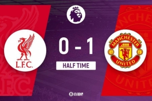 上半場傷停補(bǔ)時(shí)4分鐘,半場結(jié)束,利物浦暫0-1曼聯(lián)。