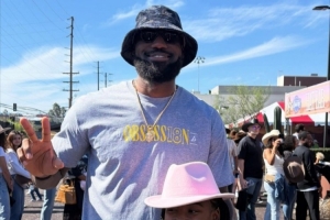 “非常感謝@湖人 他們是一個(gè)如此出色的家族企業(yè),現(xiàn)在又迎來了新的老板。感謝@東契奇和勒布朗與我的第一個(gè)孫女 @tru_jru_合影,同時(shí)也要感謝奧斯汀·里夫斯與我的女婿互動(dòng)?!贝仁榔綄懙?。