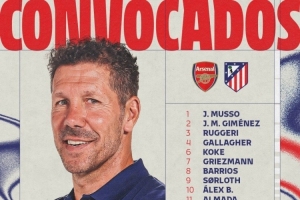 體育資訊10月20日訊 北京時間10月22日凌晨,馬競將在歐冠聯(lián)賽階段第三輪比賽中客場對陣阿森納,馬競公布了此役的球員名單,阿爾瓦雷斯、格列茲曼在列,卡爾多索繼續(xù)缺席。