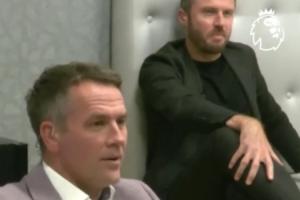 體育資訊10月20日訊 本輪英超曼聯(lián)客場(chǎng)2-1擊敗利物浦,笑傲雙紅會(huì),賽后英超官方發(fā)布了一段歐文和卡里克觀看比賽直播時(shí)的反應(yīng)。