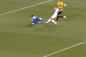 第41分鐘,帕福斯任意球,阿納爾別科夫撲出大衛(wèi)-路易斯的頭球↓