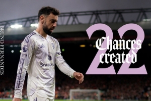 B費本賽季為曼聯(lián)出戰(zhàn)8場英超比賽,打進2球,助攻1次。曼聯(lián)官方社媒曬出數(shù)據(jù)海報,確認B費本賽季聯(lián)賽創(chuàng)造22次機會,英超球員中最多。