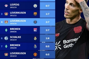 體育資訊10月22日訊 在本輪歐冠,勒沃庫森2-7慘敗給巴黎。德轉(zhuǎn)也盤點了德甲球隊在歐冠歷史最大比分失利榜單,具體如下: