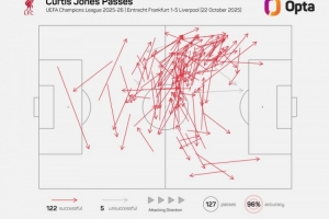 此役柯蒂斯-瓊斯為利物浦踢滿全場,成功傳球122次,這是2003-2004賽季Opta統(tǒng)計相關(guān)數(shù)據(jù)以來,利物浦球員歐冠單場成功傳球紀(jì)錄。