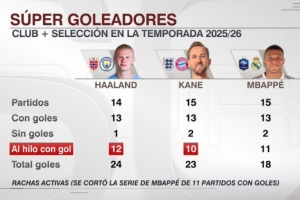 體育資訊10月23日訊 ESPN統(tǒng)計(jì)了哈蘭德、凱恩、姆巴佩本賽季俱樂部+國(guó)家隊(duì)的數(shù)據(jù),并做出對(duì)比。