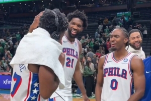 GIF-埃奇庫(kù)姆接受采訪,恩比德馬克西等人潑水慶祝