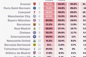 體育資訊10月23日訊 歐冠聯(lián)賽階段第三輪比賽戰(zhàn)罷,Opta超級計算機更新了各隊的奪冠概率,阿森納21.13%最高,巴黎、利物浦二三位。