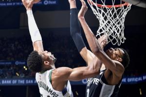 來(lái)自希臘的揚(yáng)尼斯-阿德托昆博出場(chǎng)26分45秒,26中16,其中三分3中1,罰球7中4,得到37分14籃板5助攻,正負(fù)值+10。
