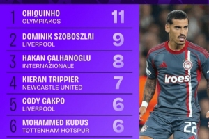 體育資訊10月23日訊 本賽季歐冠聯(lián)賽階段已戰(zhàn)罷3輪,Squawka統(tǒng)計了到目前為止的精準傳中榜單,奧林匹亞科斯中場奇奎尼奧11次位列第一,利物浦中場索博斯洛伊9次第二。