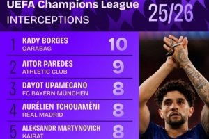 體育資訊10月23日訊 歐冠第3輪已經(jīng)完賽,數(shù)據(jù)機(jī)構(gòu)squakwa統(tǒng)計了本賽季至今的歐冠攔截情況,