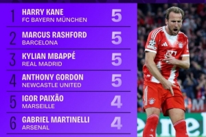 體育資訊10月23日訊 本賽季歐冠聯(lián)賽階段已戰(zhàn)罷3輪,Squawka統(tǒng)計(jì)了到目前為止的參與進(jìn)球榜,拜仁前鋒凱恩、巴薩攻擊手拉什福德、皇馬的姆巴佩以及紐卡邊鋒安東尼-戈登均參與5球。