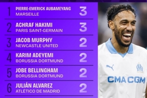 體育資訊10月23日訊 本賽季歐冠聯(lián)賽階段已戰(zhàn)罷3輪,Squawka統(tǒng)計(jì)了到目前為止的助攻榜,馬賽前鋒奧巴梅揚(yáng)和巴黎后衛(wèi)阿什拉夫均是3次助攻,分列前二。