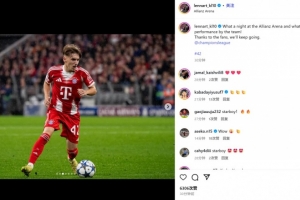 他也在賽后通過社媒曬出自己的比賽照并配文:“在安聯(lián)球場的精彩一夜,球隊的表現(xiàn)也太出色了!感謝球迷們,我們會繼續(xù)前進(jìn)?!?/p>