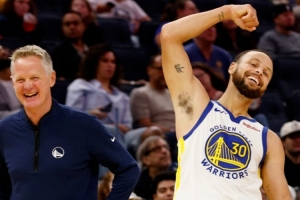 當(dāng)戈登射中第十個三分球,達(dá)成了約基奇的三雙時,庫里毫無邏輯、極不合理的34尺超遠(yuǎn)射,120平。拖進(jìn)加時。