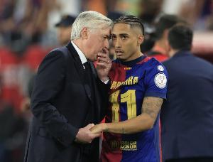 體育資訊10月24日訊 據(jù)西媒《阿斯報》最新消息,孔德預(yù)計能夠參加國家德比,而拉菲尼亞已經(jīng)確定缺席這場比賽。