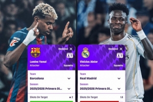 體育資訊10月25日訊 皇馬和巴薩將在本輪西甲焦點對決,數據機構squakwa對比了亞馬爾與維尼修斯在2025/26賽季西甲關鍵數據(加粗項為優(yōu)勢數據):
