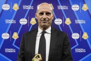 體育資訊10月25日訊 意甲官方曬照,米蘭主帥阿萊格里在米蘭對(duì)陣比薩賽前領(lǐng)取了九月最佳教練獎(jiǎng)杯。