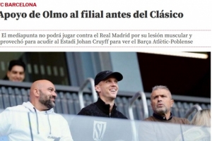 據悉,奧爾莫是在上一個國家隊比賽日期間左腿比目魚肌肌肉受傷,距離復出尚需時日。利用留在巴塞羅那的機會,奧爾莫在本周日前往約翰-克魯伊夫球場,現場觀看了巴薩B隊的比賽。