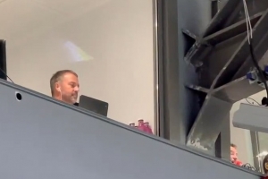 巴薩主帥弗里克由于停賽無(wú)法再場(chǎng)邊指揮球隊(duì),他出現(xiàn)在伯納烏看臺(tái)上,將遠(yuǎn)程觀察比賽形勢(shì)。