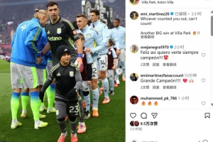 維拉門將馬丁內(nèi)斯也在賽后曬出本場照片,配文寫道:“無論誰看低你,都不算數(shù)。在維拉公園球場又一場重要勝利!”