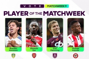 體育資訊10月28日訊 英超聯(lián)賽第9輪已經(jīng)完賽,英超官方也列出了本輪英超最佳球員候選8人名單: