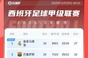 體育資訊10月28日訊 凌晨馬競客場2-0戰(zhàn)勝貝蒂斯,至此西甲第10輪比賽全部結(jié)束。