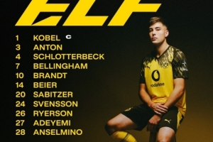 多特蒙德首發(fā):1-科貝爾、3-安東、4-施洛特貝克、7-喬布-貝林厄姆、10-布蘭特、14-拜爾、20-薩比策、24-斯文松、26-萊爾森、27-阿德耶米、28-安塞爾米諾