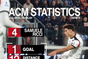 米蘭官方社媒曬出里奇本場比賽的數(shù)據(jù),他出場97分鐘打進1球,跑動距離12公里,傳球成功率97%,完成4次解圍。