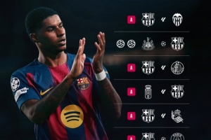歐冠聯(lián)賽階段第3輪,巴薩6-1奧林匹亞科斯,拉什福德梅開二度