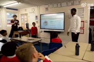 ????薩卡驚喜現(xiàn)身小學時期的母校,當時孩子們正在做關(guān)于自己偶像的演講。