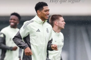 貝林厄姆更新社交媒體,曬出了下雨天團隊的日常訓練照,配文:新的一天到來啦!