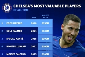 切爾西隊(duì)史球員最高身價(jià)排行榜: