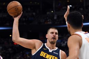 此役,約基奇出戰(zhàn)27分33秒,15中10,其中三分2中1,0罰球,得到21分12板10助攻1搶斷1蓋帽,正負(fù)值+25。