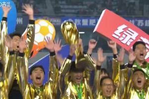賽后頒獎(jiǎng)環(huán)節(jié),泰州隊(duì)全隊(duì)身著金色戰(zhàn)袍,捧起首屆蘇超冠軍獎(jiǎng)杯!