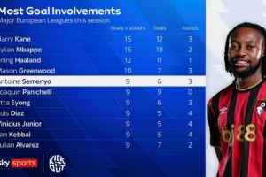 體育資訊11月2日訊 天空體育盤點(diǎn)了本賽季歐洲主流聯(lián)賽球員參與進(jìn)球榜(進(jìn)球+助攻),以下為具體榜單(只統(tǒng)計(jì)聯(lián)賽):