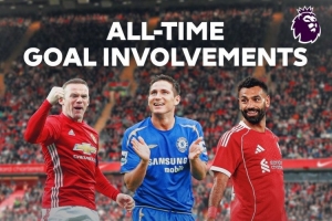 英超參與進(jìn)球數(shù)第二多的是魯尼,共計(jì)208球103助攻,參與311球,目前第三與第二之間相差32球。