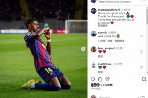 拉什福德社媒曬照慶祝勝利,配文:“主場勝利,氣氛絕佳。感謝大家的支持,蒂埃雷,正如我所承諾,這粒進球獻給你?!?/p>