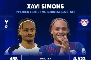 體育資訊11月4日訊 德國轉(zhuǎn)會(huì)市場統(tǒng)計(jì)了熱刺新援哈維-西蒙斯在德甲和英超的數(shù)據(jù),并做出對(duì)比。
